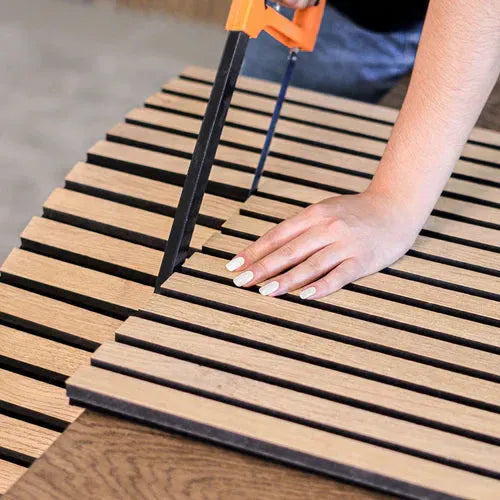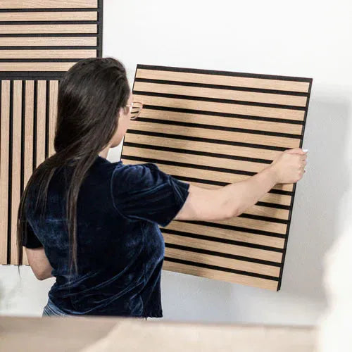 Verleihen Sie jedem Raum einen Hauch von Eleganz und Komfort mit diesem vielseitigen Lamellenpaneel. Es ist die perfekte Wahl, um Stil und Funktionalität zu vereinen.
